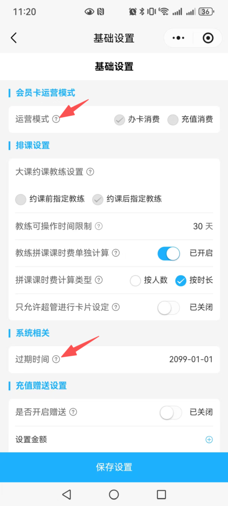 3、确定球馆的收费模式分为办卡模式或者现金模式。